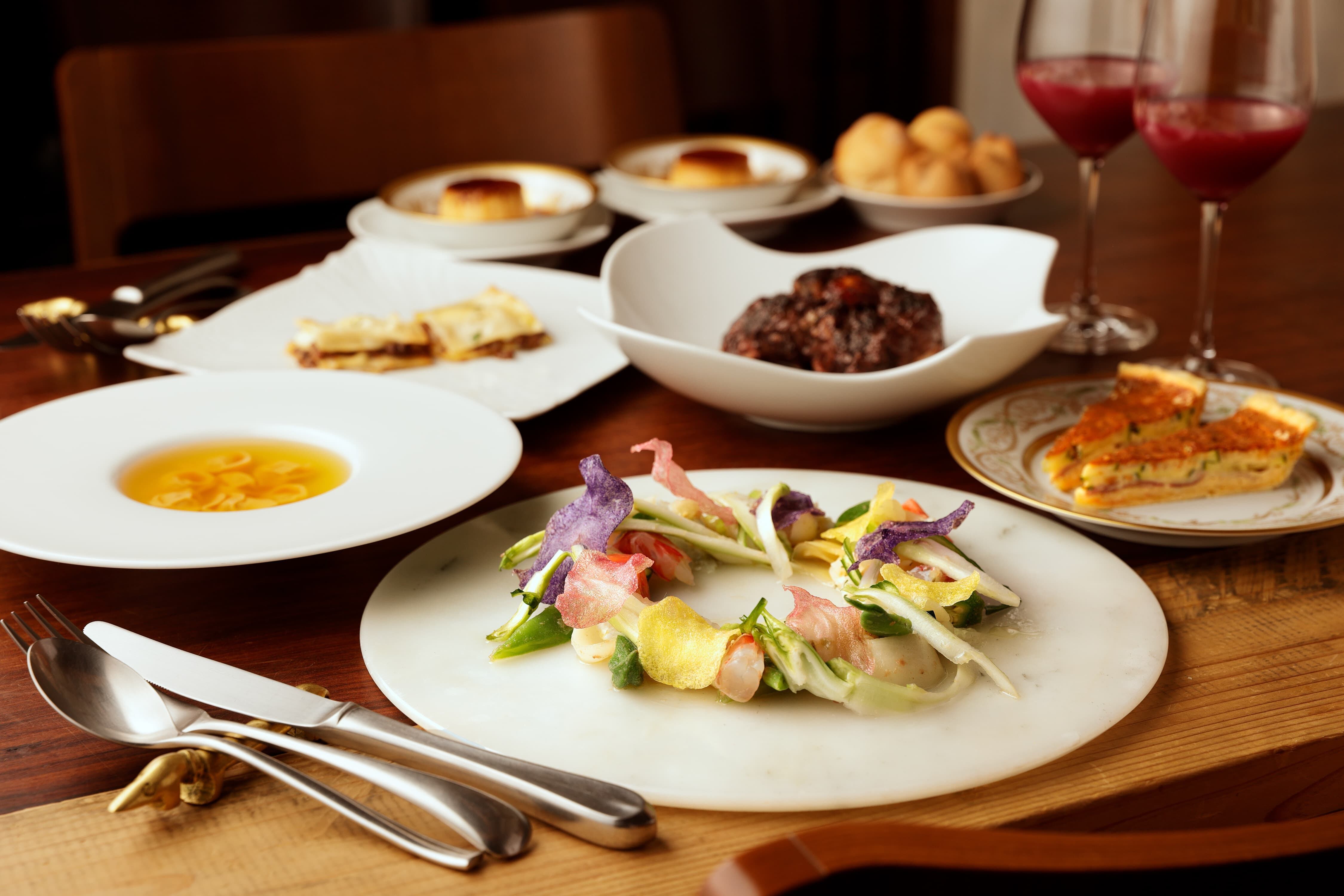 前菜からメイン、デザートまでご自宅で楽しめるコース料理のセットです。